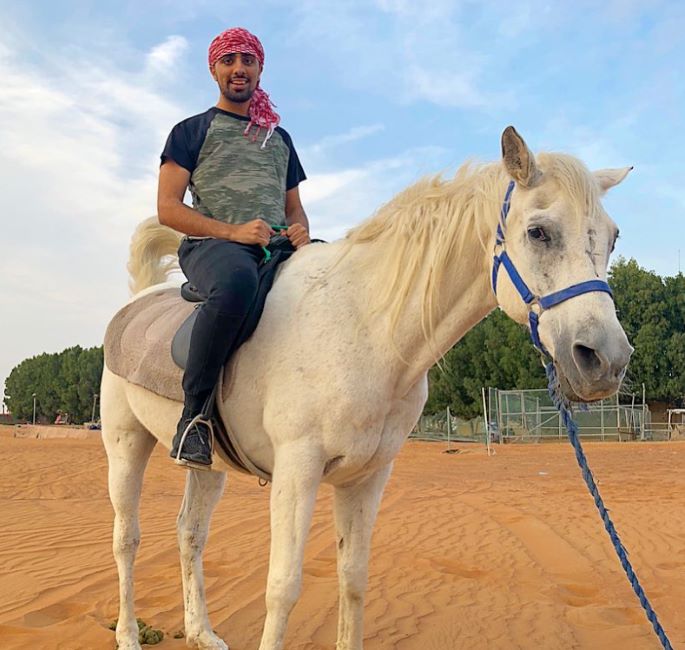 Mo Vlogs sitting on a horse